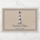 Designer Maura A. © for Sly Coconut Creative Designs. An elegant design featuring a one of a kind hand drawn lighthouse in a blue and white colour theme. The light kraft background texture is an image and is optional. The couple's name is in a modern brush script and date in a modern font. Fonts and their colours are customisable.
