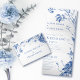 This wedding invitation is the perfect way to commemorate your special day with its eye-catching tri-fold design. The combination of blue and white floral line art with elegant typography makes it an ideal choice for both spring and summer weddings. On the inside the right side of the invite is a charming line art blooms, and the names of the couple are stylishly written in a special font. There is also ample room to include all the details of your wedding. With this invitation, you can be sure your big day is remembered in a memorable way.