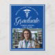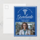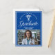This classic blue custom medical school graduation postcard announcement for a nurse or doctor features classy white typography under a medical caduceus and your college name for the class of 2025. Customise with your graduating year under the elegant calligraphy for a great personalised university graduate postcards.
