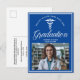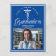This classic blue custom medical school graduation party invitation postcard for a nurse or doctor features classy white typography under a medical caduceus and your college name for the class of 2024. Customise with your graduating year under the elegant calligraphy for a great personalised university graduate postcard invite.