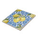 Beautiful classic Mediterranean style pattern with watercolor lemons on ornate decorative blue tiles.