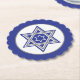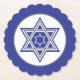 Hanukkah themed disposable coasters. Classic Hanukkah blue background with an image of a multi-layered Star of David in a white circle. Lovely coaster for your guests to put under their drinks.