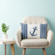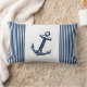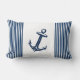 Blue White Nautical Anchor Stripes Lumbar Cushion