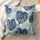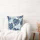 Blue White Palm Leaves Throw Pillow