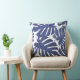 Blue & White Palm Tropical Leaves Pattern Cushion