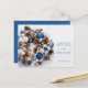 Business holiday greeting postcards feature a beautiful wreath of blue and silver ornaments, pine cones with Season's Greetings (or any wording) and your company name on the front, your personalised thank you message, names and logo on the back.