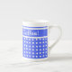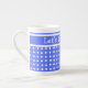 A smart, customisable, bone china Coffee Mug, with a blue and white polka dot design created digitally by Judy Adamson.