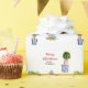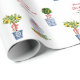Watercolor handprinted personalised Merry Christmas wrapping paper with Blue and white pottery and topiary.