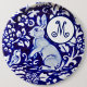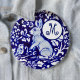 This elegant cobalt blue and white china design has a pert rabbit, birds and flowers. Can be customised with a monogram of your choice.