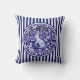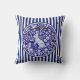 Blue & White Rabbit Bunny Stripes Dedham Floral Cushion