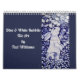 Blue & White Rabbit Tile Art Calendar Cobalt Navy
