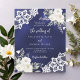 For an elegant and romantic wedding. A navy blue, uneven coloured background decorated with white florals, roses and white lace. Personalise and add your names and details.