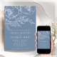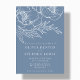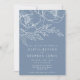 Customisable modern wedding design featuring a delicate white line floral design on a periwinkle blue background with white elegant lettering.