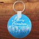 Blue White Snow Peaceful Forest Merry Christmas Key Ring