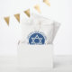 Favour bags for a bar mitzvah with a white star of David against a blue background. Personalise with name in an arch around the star.