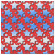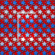 Linda Baysinger Peck’s colourful blue and white stars patriotic design on bright red background.