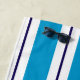 Blue and white striped beach towel with a blue anchor in the centre to give a nautical feel.