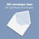 DIY envelope liner design with a blue and white seersucker striped pattern (which matches the reverse on some of the invites / stationery). This is designed to be used with pointed flap envelopes (sometimes called Euroflap envelopes) which I know some customers prefer. This is the style most often used in high-end bridal suites (and styled photography) as the Euro Flap envelope gives a more romantic and less formal look to the suite. After purchasing your envelopes, you will need to find or make your own die or template for the liners (several are available online but as the envelopes do very slightly I'd recommend you test these out before cutting out all of your liners).