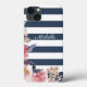 The sailor blue & white stripe design with flowers make a beautiful cell phone cover. Add your name to personalise it and make it one of a kind. Available to fit different models