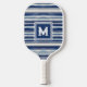 Fresh and bright shades of blue and white on this striped design with a monogram box for a single initial.