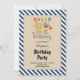 Blue/White Stripes Framed 7th Birthday Party Invit Invitation