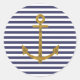 Blue White Stripes Gold Anchor Glitter Print Classic Round Sticker