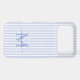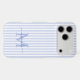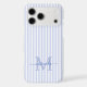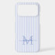 Protect your phone in style with this elegant personalized phone case, designed for a chic and feminine look. Featuring a soft blue and white striped background, the back of the case showcases your monogram initial and name in a fancy script font, creating a timeless and sophisticated design.