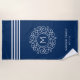 Blue White Beach Towel with Name, Monogram, Initial and Stripes Pattern.