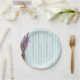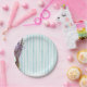 Blue & White Stripes Pink Floral Paper Plate