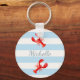 Blue white stripes red lobsters name key ring