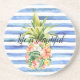 Blue White Stripes Tropical Floral Pineapple Coaster