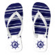Blue & White Stripes With Nautical Boat Wheel 3 Jandals