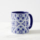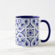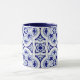 Blue and white Italian or Portuguese tile look coffee mug. Part of a matching set - towel, tumbler, clock and tote bag.