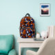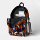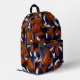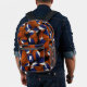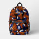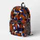 This cool basketball backpack features a random pattern of varied size basketballs turned every which way on a black background - each of the basketballs in the pattern has two recolored panels--one blue and one white - customise with the athlete's monogram - by katz_d_zynes