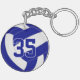 This team colours volleyball themed keychain for boys or girls features a realistic looking blue and white volleyball upon which you can customise the player's name, jersey number and court position, plus school or club name and mascot name in a varsity letter style font - by katz_d_zynes