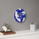 This team colours volleyball themed wall clock for boys or girls features a realistic looking volleyball graphic with blue and white panels and overlying clock face numerals - customise with the athlete's name in an autograph style font and jersey number in a varsity letter style font - by katz_d_zynes