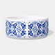 Blue White Tile Pattern Elegant Personalized Pet Bowl.