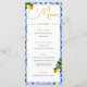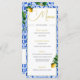 Elevate your special Wedding day with this Italian inspired elegant Italian blue tile and gold colour botanical lemons Wedding Menu.