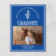 This custom blue veterinary school graduation announcement postcard features white typography for a class of 2024 graduate above your student photo. Customise with your graduating year under the veterinary medical caduceus and photograph for a great personalised veterinarian postcard.