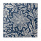 It is a graphic bicolor stylised watercolor floral pattern of ivory flowers and leaves on a deep dark blue background.
