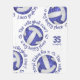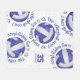 This cute volleyball themed fleece blanket features 5 randomly arranged blue and white volleyballs with the text, "The volleyball court is my happy place" in blue encircling each volleyball in a fun handwritten style typographic font, all on a white background - the volleyballs' blue panels are blended with an artsy, girly floral pattern - her name and jersey number are customisable - by katz_d_zynes