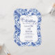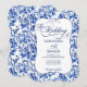 Blue & White w Calligraphy Floral Toile Wedding Invitation