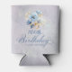 Blue White Watercolor Floral 100th Birthday Can Cooler