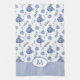Pretty blue and white pumpkin, berries and assorted greenery (in blue) pattern on top with a blue and white vertically-striped pattern on bottom. Simply add your initial to the oval shaped emblem.