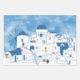 Blue & White Watercolor Santorini Greece Wrapping Paper Sheet