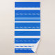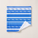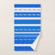 A modern striped nautical bathroom towel set with elegant waves in fresh navy blue and white colours. Beautiful for a beach house or coastal living space.