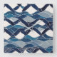 Blue White Wave Pattern 01 Square Wall Clock