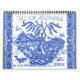 A whimsical calendar for nature and animal lovers, or for anyone who loves blue and white decor and pottery and dinnerware! "Isle of Animals" ("I love animals!") features original adaptations of antique Blue Willow dish patterns, in cobalt blue on crisp white. The islands are populated with my unique animal paintings, each decorated with stylised floral motifs inspired by antique Blue Willow, Delft, Dedham and oriental chinoiserie pottery. Each month features an island filled with stylised foliage, little temples or pagodas, and a different set or combination of animals. There's the Isle of Deer, Isle of Rabbits, Isle of Birds, Isle of Butterflies, Isle of Turtles, Isle of Lucky Cats, Isle of the Chinese Zodiac and more. There are also flying phoenix birds and spouting whales. My hand painted Blue Willow dish border adds traditional flair to each panel. The year can be customised to suit any year; easy to do using the text template and edit menu. A great kitchen or office accessory and a nice Christmas gift for the upcoming year. Whimsical, unique, original artwork & design by Tuzi Williams.