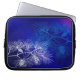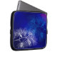 Winter holiday art with an elegant pattern of pine boughs and pinecones in blue and white on an icy background of blues and violet.