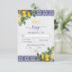 Blue White Yellow Mediterranean Tile Lemon Wedding RSVP Card